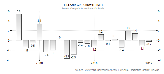 “Republic of Ireland falls back into recession. The country had to be bailed out after a property market crash” reports bbc.co.uk.