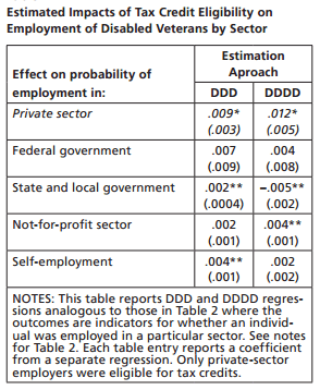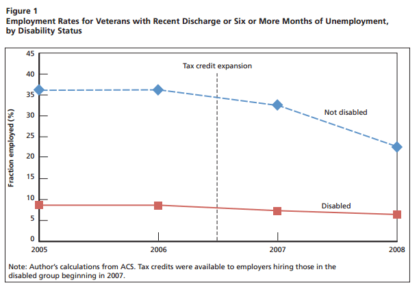 Among the myriad federal programs available to assist unemployed veterans, few have been subjected to the rigorous empirical evaluation necessary to establish whether they are effective at actually getting veterans hired. This paper provides some of the first quantitative evidence demonstrating that employer tax credits, which have become an increasingly popular tool in the federal effort to assist unemployed veterans, can be successful at improving employment rates among disabled veterans.
