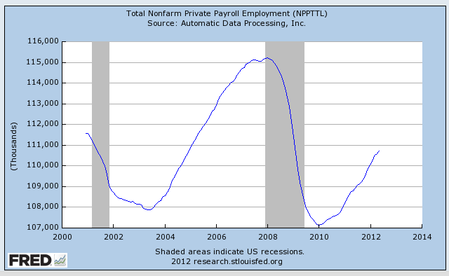 This is a very bad news for private sector non-farm employment (FIG 3) and reinforces the negative signals from received recently from the Curent Population Survey and Unemployment Claims data. (See Unemployment Claims in US – Very bad news: Revised Nbre @ 400K and Still Near 2012 High )