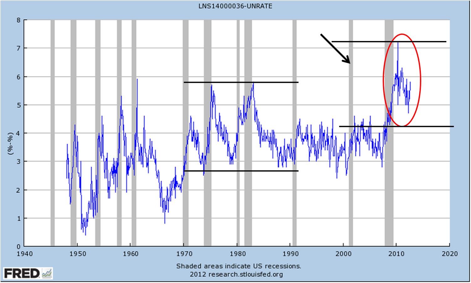 The unemployment gap for youth, which has climbed to 7 %, has never been durably below 5 % since the last recession. Something permanent in character has changed, for worse. This is not counting the discouraged effect…