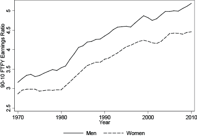 Figure 2 Difference in weekly earnings ratio between the top 10% and bottom 10% (Full-time full-year, FTFY, 90-10)
