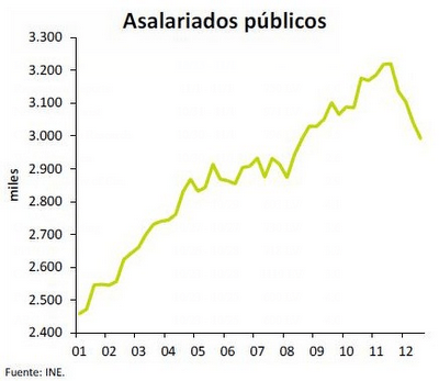 The number of public employees in September stood at a total of 2.99 million, thus lowering the threshold of 3 million for the first time since the third quarter of 2008. Nevertheless, the Spanish public sector still has to this day with more than 59,800 employees at the beginning of the crisis, as in the third quarter of 2007 they numbered 2,931,900 workers.
