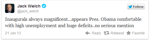 Source: Jack Welch On Obama’s Inauguration: President ‘Comfortable With High Unemployment’