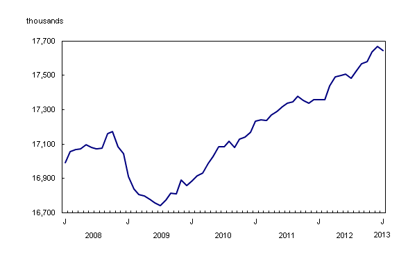 Compared with 12 months earlier, employment increased by 1.6% or 286,000, all in full-time work. Over the same period, the total number of hours worked rose 1.7%.