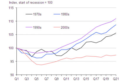 Real GDP in UK recessions. Source: ONS
