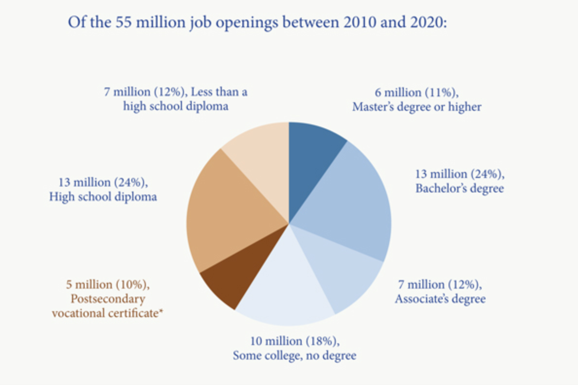 In an update of its widely cited estimates last released in 2010, the center says that, at current graduation rates, there will be five million more jobs requiring employees with university degrees by 2020 than people to fill them.