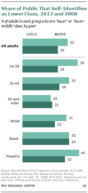 via A Third of Americans Now Say They Are in the Lower Classes | Pew Social & Demographic Trends.