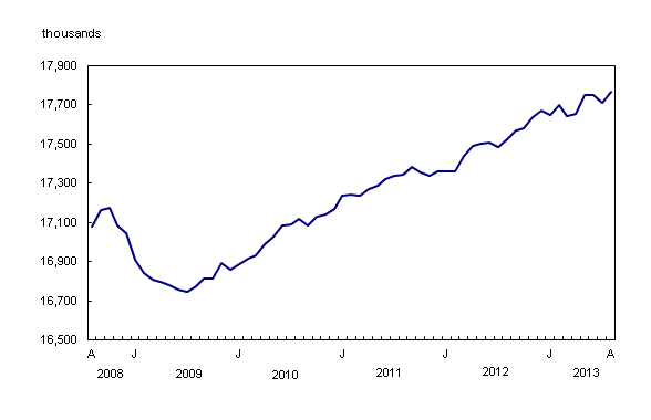 Since August 2012, employment has increased 1.4% (+246,000). At the same time, the number of hours worked has grown 1.3%.