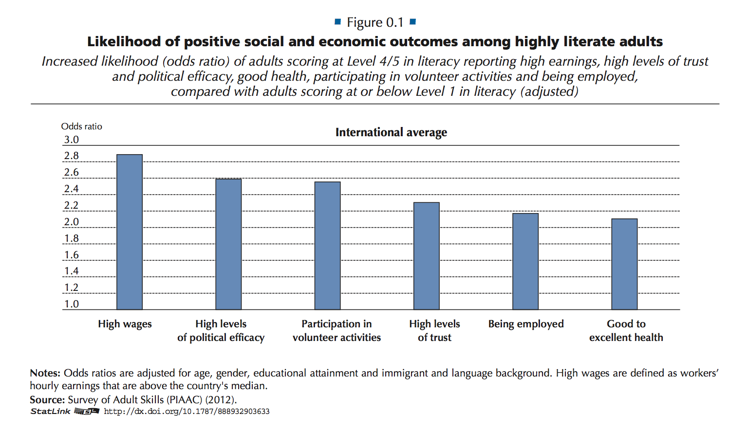 Those with lower skills proficiency also tend to report poorer health, lower civic engagement and less trust.