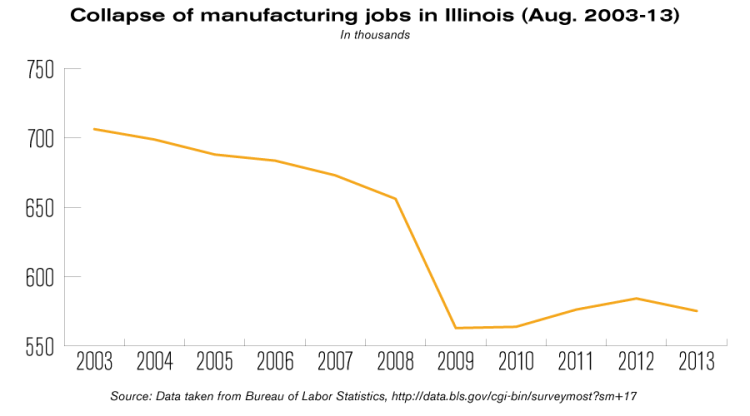 It’s hard not to notice the disappearance of Illinois’ manufacturing sector. Anyone driving through the outskirts of Peoria can witness the closed buildings and half-abandoned neighborhoods. Cities all across Illinois have seen a similar story unfold. Illinois’ manufacturing base has been in decline, losing over 130,000 manufacturing jobs in the past decade.