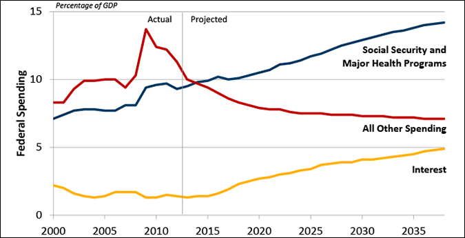 Spending for Social Security, Medicare and Medicaid is growing and will continue to climb in the long-term.