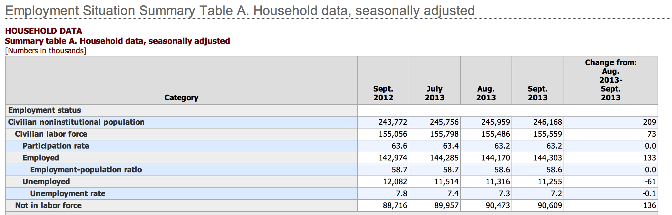 The unemployment rate, at 7.2 percent, changed little in September but has declined by 0.4 percentage point since June. The number of unemployed persons, at 11.3 million, was also little changed over the month; however, unemployment has decreased by 522,000 since June. (See table below)