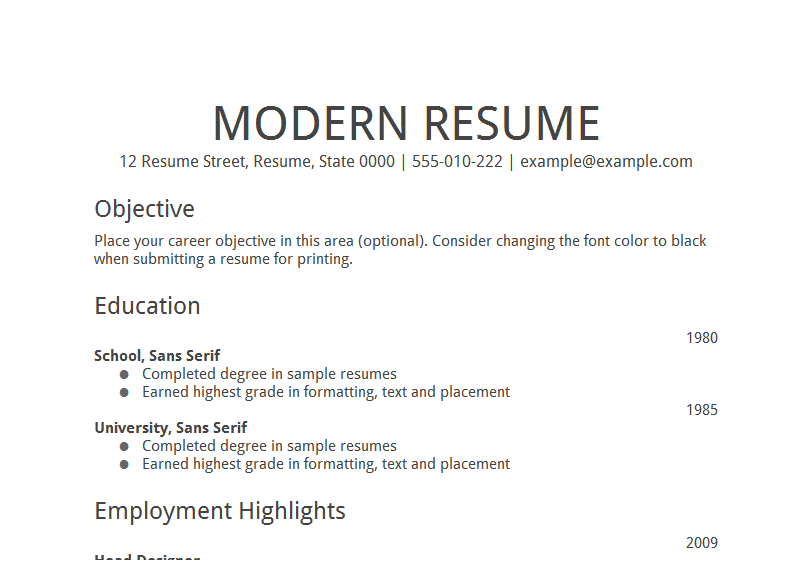 - Job Search Tolls: 50 Objectives statements to be customized and Google’s Online Free Resume Template