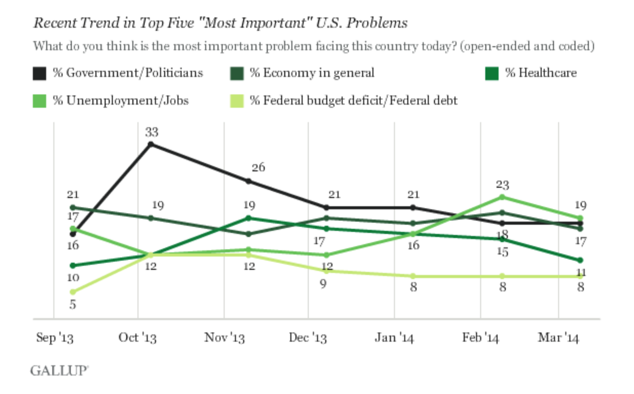 Chosen excerpts by Job Market Monitor. Read the whole story at Americans Cite Jobs, Economy, Gov’t as Top U.S. Problems.