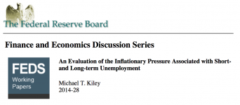 In the years following 2009, long-term unemployment has been very elevated while inflation has fallen only moderately, raising the question of whether the long-term unemployed exert less downward pressure on prices than the short-term unemployed, perhaps because such potential workers are disconnected from the labor market. However, empirical evidence is mixed.