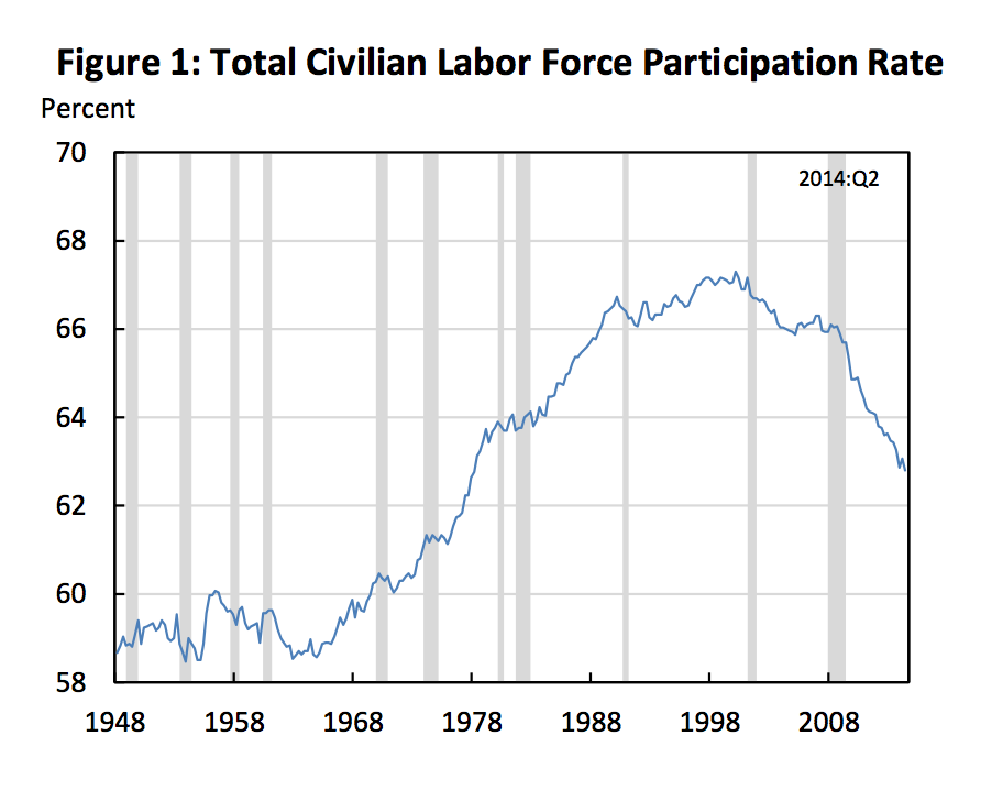 Since the final quarter of 2007, the labor force participation rate has fallen from 65.9