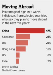 Chosen excerpts by Job Market Monitor. Read the whole story at Almost Half of Wealthy Chinese Want to Leave, Study Shows – China Real Time Report – WSJ.