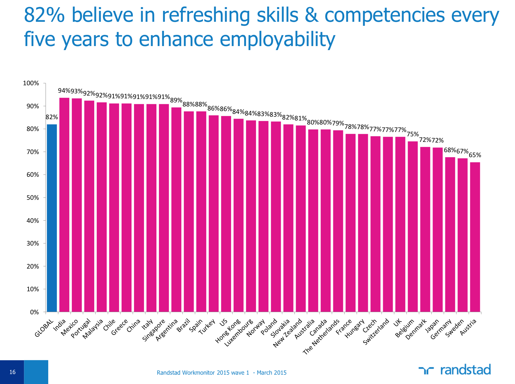 82% believe in refreshing skills & competencies every five years to enhance employability.
