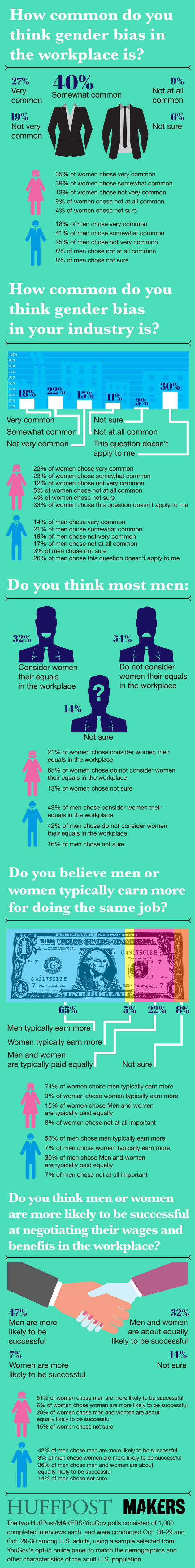 65% Of Women Don’t Think Men Consider Them Equals At Work How women and men really feel about workplace sexism, according to a MAKERS/HuffPost survey.