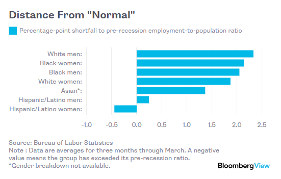 Chosen excerpts by Job Market Monitor. Read the whole story at The White-Guy Jobs Deficit – Bloomberg View