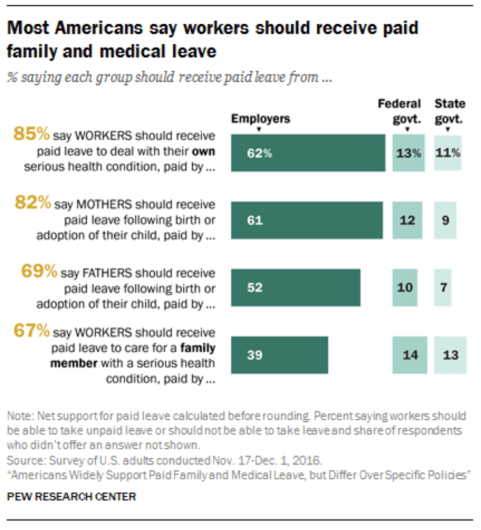 Chosen excerpts by Job Market Monitor. Read the whole story at Americans Widely Support Paid Family and Medical Leave | Pew Research Center