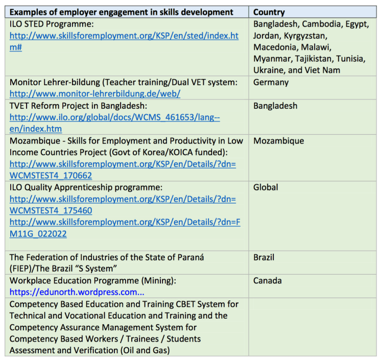 - While the importance of engaging industry in skills development systems is widely recognized, the level of actual engagement of industry is still low in many parts of the world.