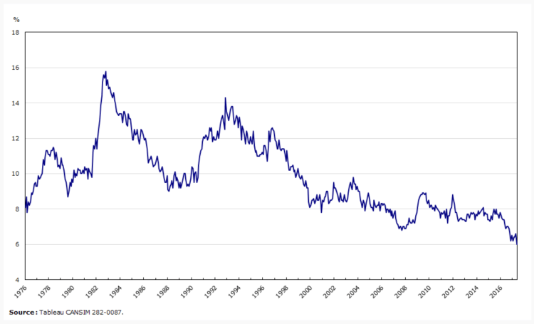 Taux de chômage au Québec, janvier 1976 à mai 2017