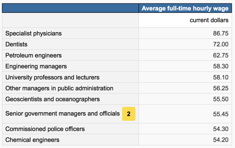 The 10 occupations with the highest average full-time hourly wage, 2016