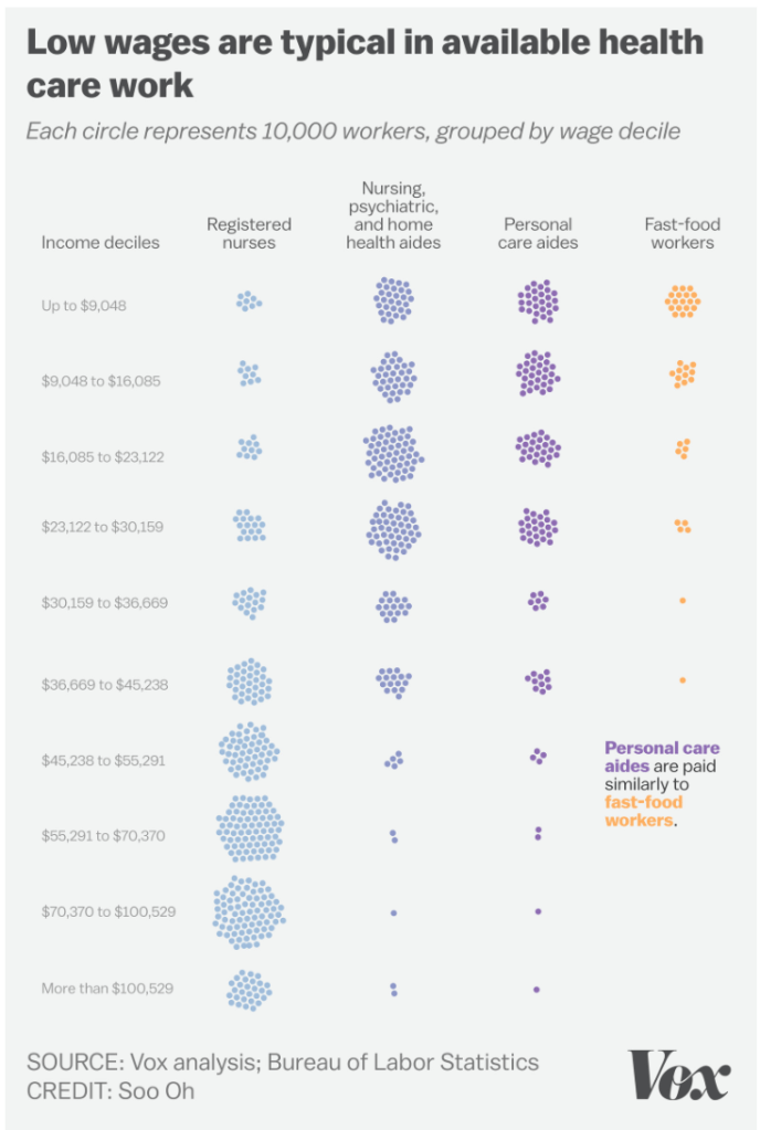 Chosen excerpts by Job Market Monitor. Read the whole story at The future of work is the low-wage health care job – Vox