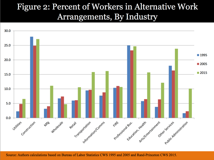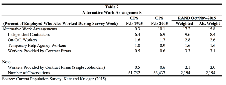 Chosen excerpts by Job Market Monitor. Read the whole story at The rise and nature of alternative work arrangements in the United States, 1995-2015
