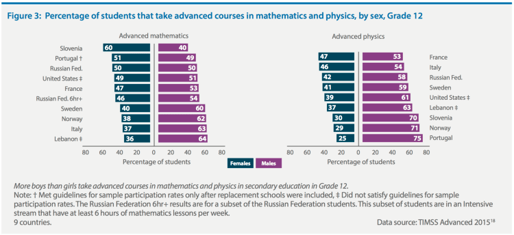 Assessment contents, tools and processes can a ect girls’ learning outcomes in STEM subjects. Psychological reactions to competition or testing, such as mathematics anxiety, which is more common among female learners, and teachers’ own biases, may further compromise girls’ performance. Like all aspects of education, the way STEM learning is assessed needs to be free from gender bias.