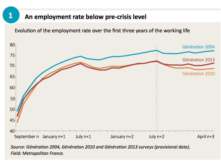 Chosen excerpts by Job Market Monitor. Read the whole story at 2016 survey of the 2013 cohort: No improvement in the education-to-work transition for young people with lower secondary qualifications only / Training and employment / publications / accueil – Céreq – Centre d’études et de recherches sur les qualifications