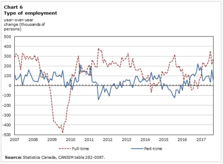 Total employment rose by 186,000 (+1.0%) in the first six months of 2017, led by gains in full-time work and among core-age individuals (aged 25 to 54). Gains among private sector employees accounted for about one-half of the total increase. Higher employment in services, supported by gains in professional, scientific and technical services and in health care and social assistance, accounted for over two-thirds of the overall increase.