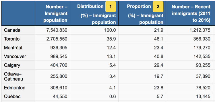 Chosen excerpts by Job Market Monitor. Read the whole story at The Daily — Immigration and ethnocultural diversity: Key results from the 2016 Census