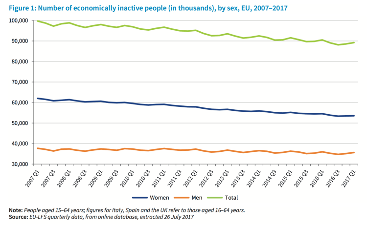 Chosen excerpts by Job Market Monitor. Read the whole story at More than one in four working-age adults in the EU remain economically inactive | Eurofound