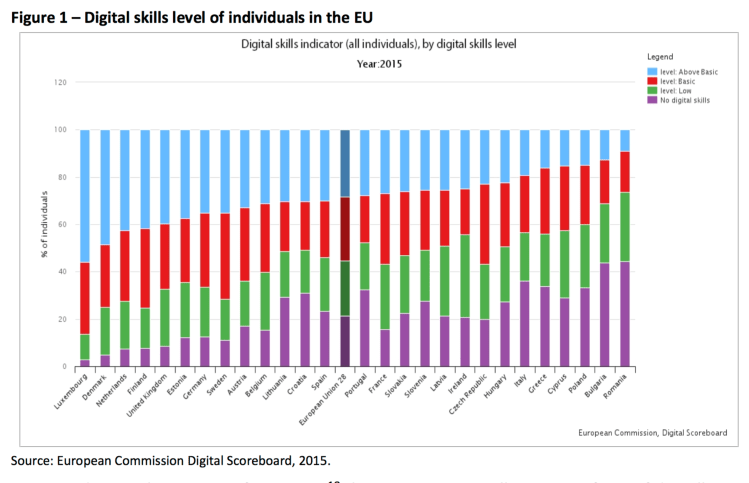 Reducing the mismatch between the skills available and those demanded for the digital transformation of the economy has been a key EU-level priority over the past decade. For instance, a 2008 communication entitled ‘New skills for new jobs’ emphasised the increasing need for digital skills in the shift to a low-carbon economy. Furthermore, the 2010 Digital Agenda recognised the need for indicators to measure the extent of digital competence in the EU. This was implemented through the development of the Digital Competence Framework (‘Dig Comp’), enabling citizens to evaluate their digital skills, and the Digital Economy and Society Index (‘DESI’), summarising relevant indicators on Europe’s digital performance and tracking the evolution of EU Member States in the area of digital competitiveness.