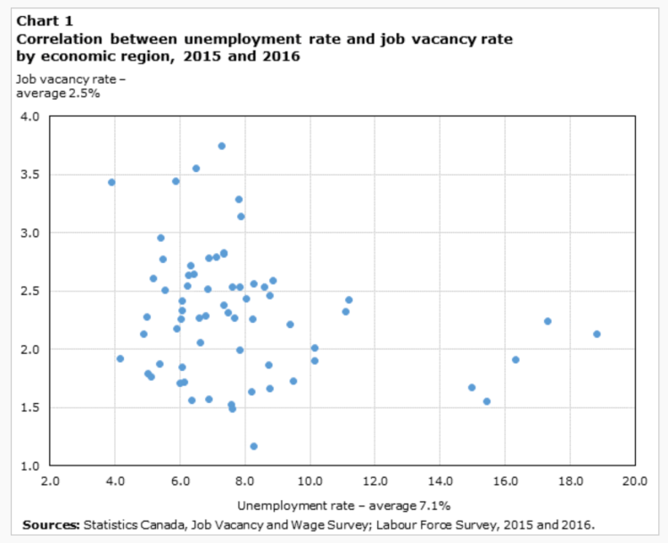 - In 2015/2016, there were 3.4 unemployed persons per job vacancy in Canada. Newfoundland and Labrador (8.2) had the highest ratio, while British Columbia had the lowest ratio (2.2).
