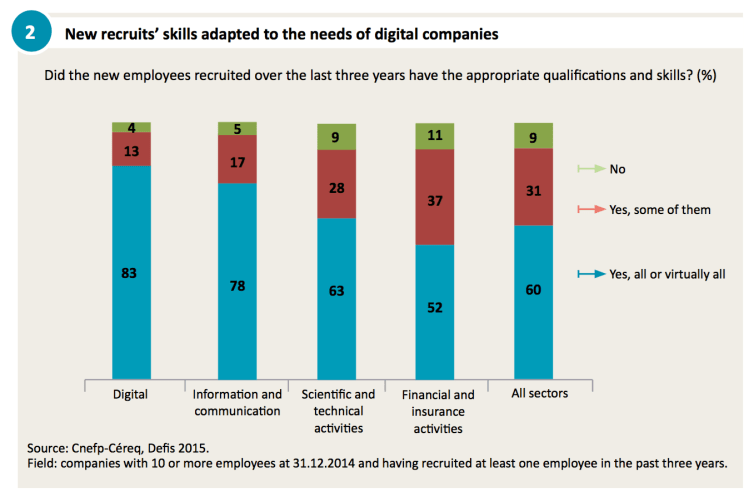 Chosen excerpts by Job Market Monitor. Read the whole story at Adapting skills : a challenge digital companies have to meet / Training and employment / publications / accueil – Céreq – Centre d’études et de recherches sur les qualifications