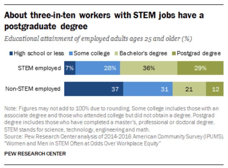 Chosen excerpts by Job Market Monitor. Read the whole story at 7 facts about the STEM workforce | Pew Research Center