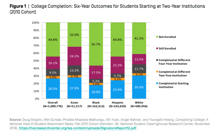 odds are worse if they start in a two-year college and if they are black or Hispanic.