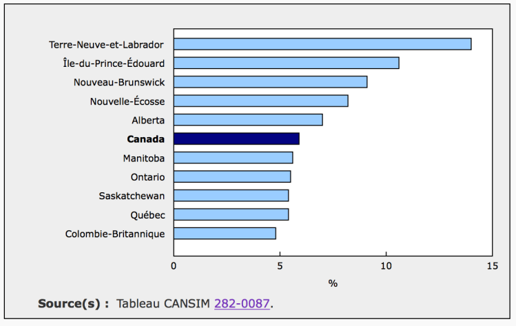 Après trois mois de hausses, l’emploi a diminué de 17 000 au Québec, en raison d’une baisse du travail à temps partiel. Le taux de chômage a augmenté de 0,4 point de pourcentage pour atteindre 5,4 % par suite d’une hausse du nombre de personnes à la recherche de travail. Par rapport à 12 mois plus tôt, l’emploi a progressé de 71 000 (+1,7 %) au Québec, et le taux de chômage a diminué de 0,9 point de pourcentage.