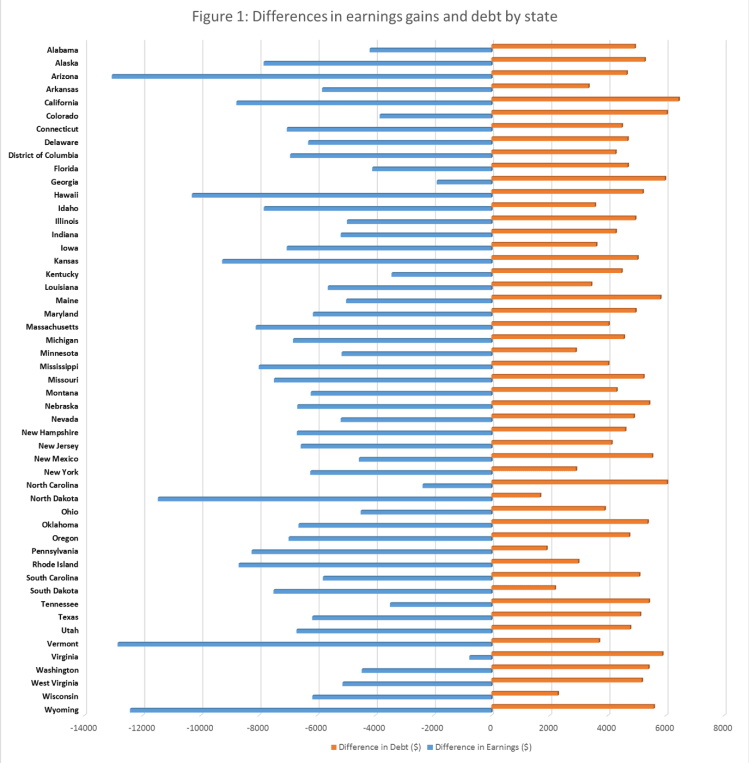 In a forthcoming paper for the Journal of Human Resources, co-authored with Federal Reserve Board of Governors Senior Economist Nicholas Turner, we generate comprehensive new estimates of labor market outcomes and debt incurred by students in vocational (or career-technical education, “CTE”) certificate programs in the for-profit sector. We compare for-profit students’ outcomes to the outcomes of similar students in similar public sector certificate programs. We further compare the employment and earnings of for-profit students to demographically similar individuals who do not pursue any postsecondary education.