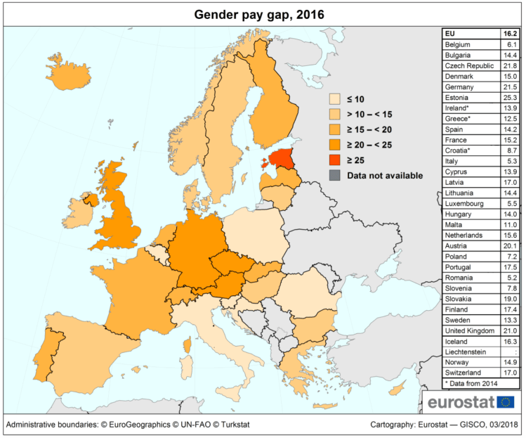 Chosen excerpts by Job Market Monitor. Read the whole story at 8 March 2018: International Women’s Day – Women in the EU earned on average 16% less than men in 2016 – Lowest pay gap in Romania and Italy, highest in Estonia