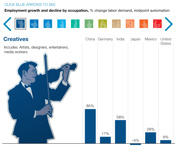 Chosen excerpts by Job Market Monitor. Read the whole story at How will automation affect jobs, skills, and wages? | McKinsey & Company