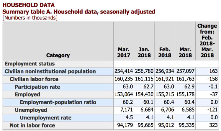 In March, the unemployment rate was 4.1 percent for the sixth consecutive month,and the number of unemployed persons, at 6.6 million, changed little.
