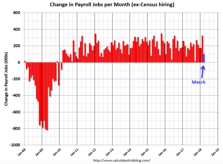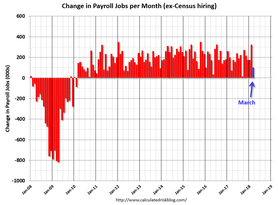 Source : Calculated Risk: March Employment Report: 103,000 Jobs Added, 4.1% Unemployment Rate