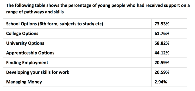 Consistency and Quality Careers Advice: A lack of a clear careers advice and guidance policy means that young people are not informed about all career routes. There is also a recognition of needing better support to understand local labour market needs and the job market in general.