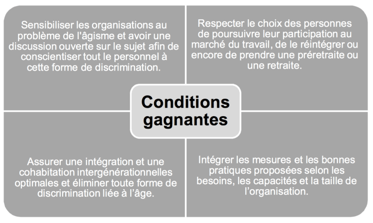 Il s’adresse principalement aux organisations qui désirent encourager les travailleurs expérimentés à poursuivre leur carrière et favoriser l’embauche et le retour en emploi des travailleurs expérimentés après une absence plus ou moins prolongée du marché du travail.