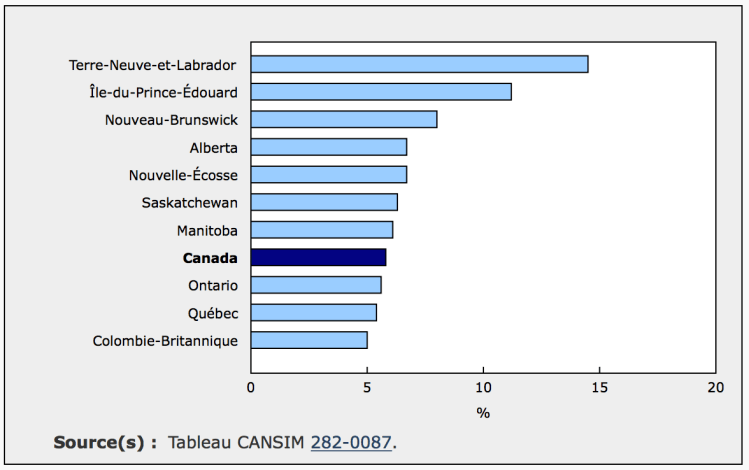 Taux de chômage selon la province, avril 2018