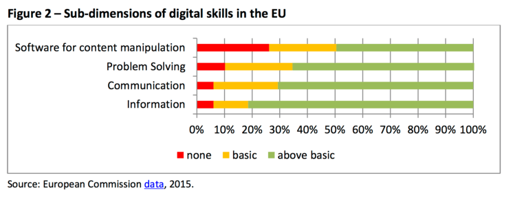 Reducing the mismatch between the skills available and those demanded for the digital transformation of the economy has been a key EU-level priority over the past decade. For instance, a 2008 communication entitled ‘New skills for new jobs’ emphasised the increasing need for digital skills in the shift to a low-carbon economy. Furthermore, the 2010 Digital Agenda recognised the need for indicators to measure the extent of digital competence in the EU. This was implemented through the development of the Digital Competence Framework (‘Dig Comp’), enabling citizens to evaluate their digital skills, and the Digital Economy and Society Index (‘DESI’), summarising relevant indicators on Europe’s digital performance and tracking the evolution of EU Member States in the area of digital competitiveness.